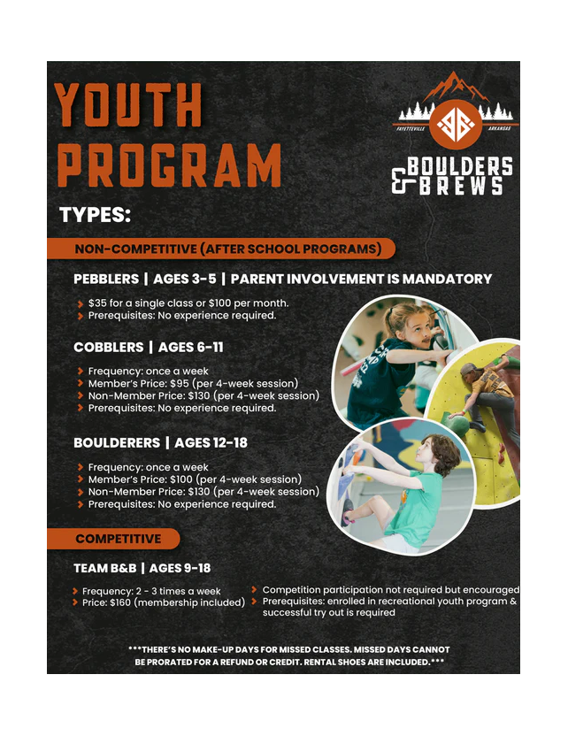 Youth Program - Boulderers Ages 12-18 (Member's Price)